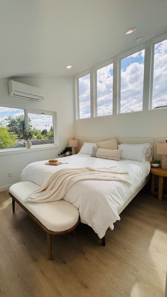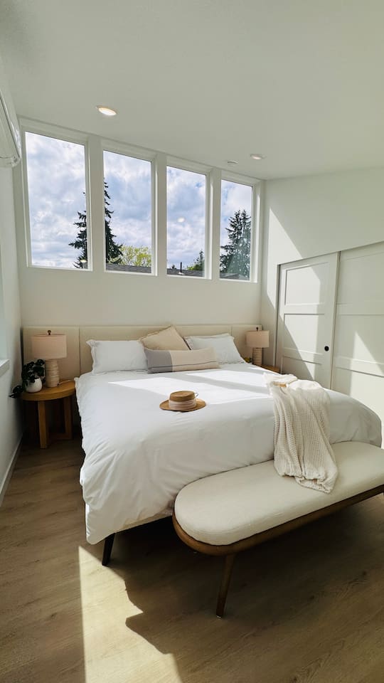Welcome to your luxurious retreat in the heart of Seattle! This newly built 3BR, 2BA designer home offers 15-ft ceilings, skylights, and oversized windows that flood the space with natural light. Perfect for families, groups, or business travelers seeking comfort and style. β¨ Highlights: π‘ 1,300 sq. ft. of elegant living space βοΈ High ceilings + skylights π Free parking & central location π Close to malls, hospitals, and restaurants π° Extended Stay Discounts: 13% weekly | 30% monthly