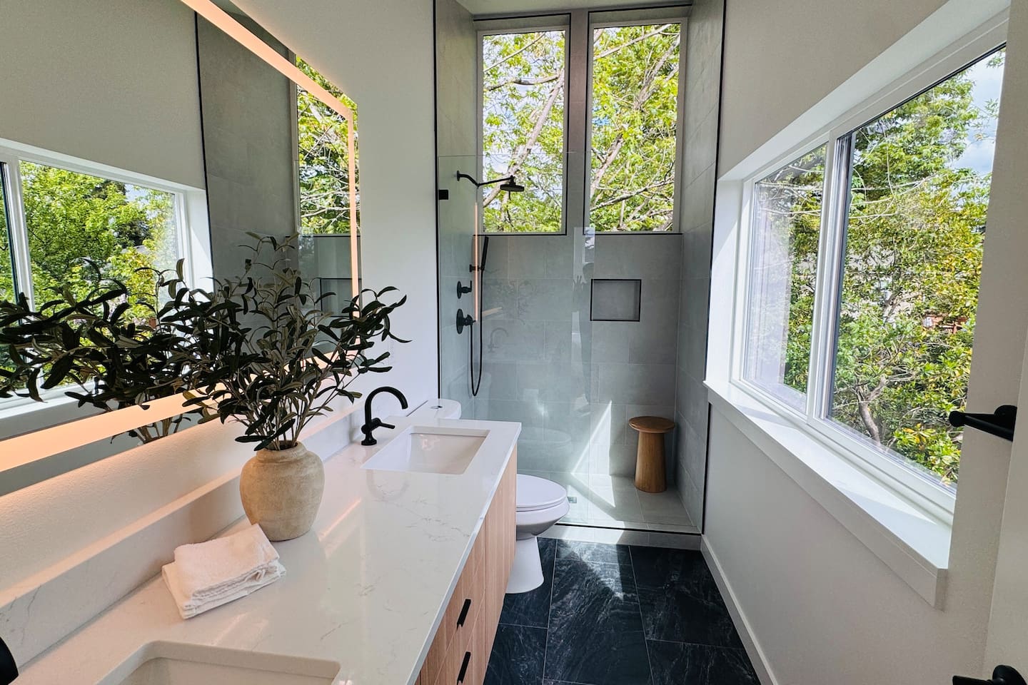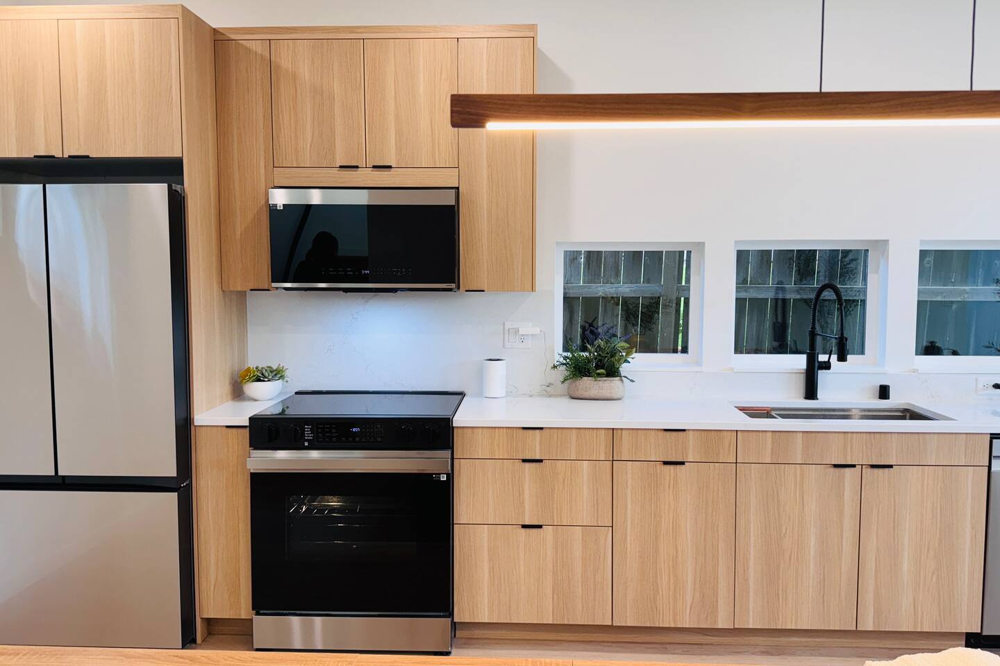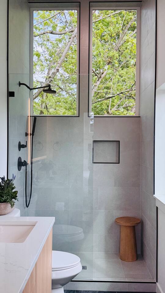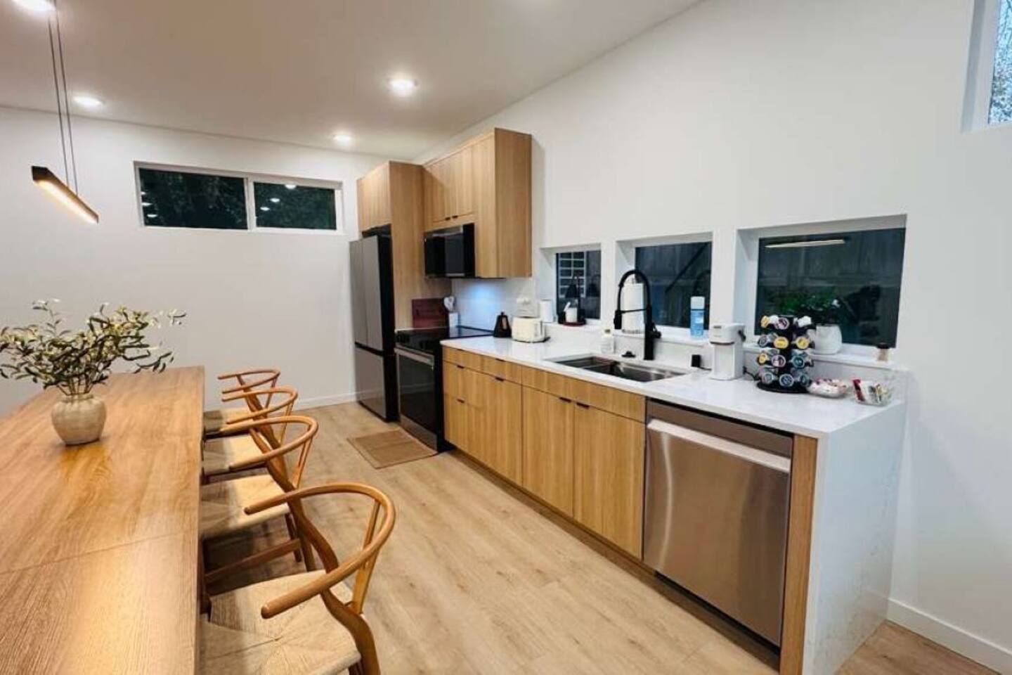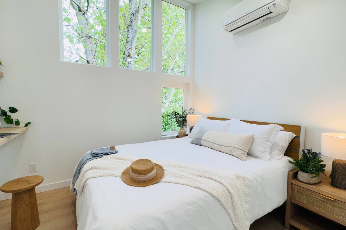 π Modern Luxury & Comfort: Step into your newly built designer retreat, featuring up to 15-ft ceilings, skylights, and oversized windows that fill the home with natural light. Every corner of this 4-bedroom, 2-bath home is crafted for elegance and function β perfect for families, business travelers, or long-term guests. β‘οΈ Modern Amenities: High-end finishes and contemporary design Samsung Bespoke appliances for a premium kitchen experience Central A/C and heating for year-round comfort Regular outdoor outlet by the front door to charge your EV (bring your own adapter and charging cable) In-unit washer and dryer for convenience π³ Gourmet Kitchen: Fully equipped kitchen with cookware, dishware, and utensils Sleek Samsung Bespoke refrigerator, oven, and microwave Coffee maker, toaster, and dining area for six π Sleeping Arrangements: Primary Bedroom: King bed with ensuite bath Bedrooms 2β3: Each with plush queen beds and storage Bedroom 4: Full bed. No curtain available Premium bedding and blackout curtains for restful sleep π³ Private Outdoor Space: Enjoy a private yard β ideal for morning coffee, reading, or entertaining guests Patio seating area and green space for relaxation π Convenient Parking: 1 assigned parking space in front of the house Tight driveway shared with the neighboring home β please park carefully Garage available but compact β best suited for small vehicles Free street parking also available nearby π§Ί Laundry: In-unit washer & dryer