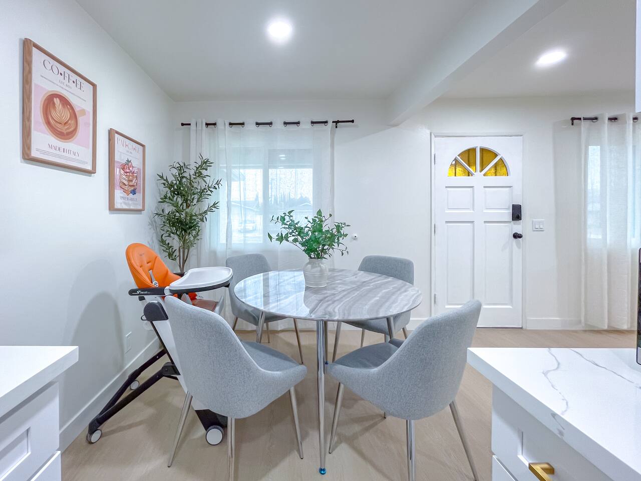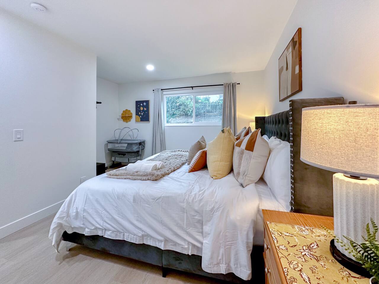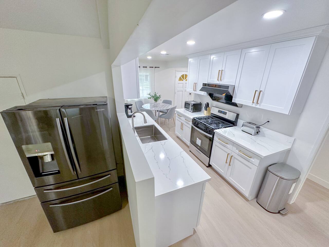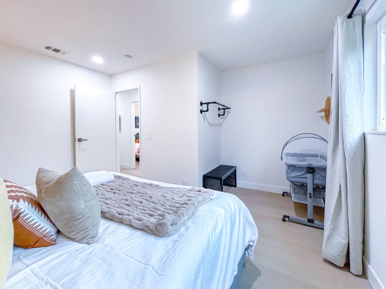 This entire private single-family home offers a comfortable, family-friendly layout with two living rooms, allowing everyone to relax without feeling crowded—ideal for families traveling together or multi-generational groups. 🏡 Home Overview Single-story home Private entrance Two separate living rooms for extra space & flexibility Central air conditioning Steps present on property 🛋️ Living Spaces Main Living Room: Large seating area 78” Smart TV Perfect for movie nights and group gatherings Second Living Room: Separate, quieter space Ideal for kids, reading, remote work, or relaxing away from the main TV (No cable provided—guests may log into their own streaming accounts.) 🛏️ Bedrooms & Sleeping Arrangements Primary Bedroom: King bed + ensuite bathroom Bedroom 2: King bed Bedroom 3: King bed Bedroom 4: Queen bed Fresh linens, pillows, towels, and extra blankets are provided. Additional towels are available in an unlocked closet. 🍳 Kitchen & Dining Fully equipped kitchen Pots, pans & cooking basics (oil, salt & pepper) Dishes, silverware, cups & wine glasses Coffee maker with coffee provided Dishwasher & garbage disposal 🧺 Laundry & Essentials Washer & dryer Vacuum Hair dryer Shampoo, conditioner & body wash Iron, ironing board & hangers 👶 Family-Friendly Amenities Crib High chair 🚗 Parking Garage parking Driveway parking Street parking available