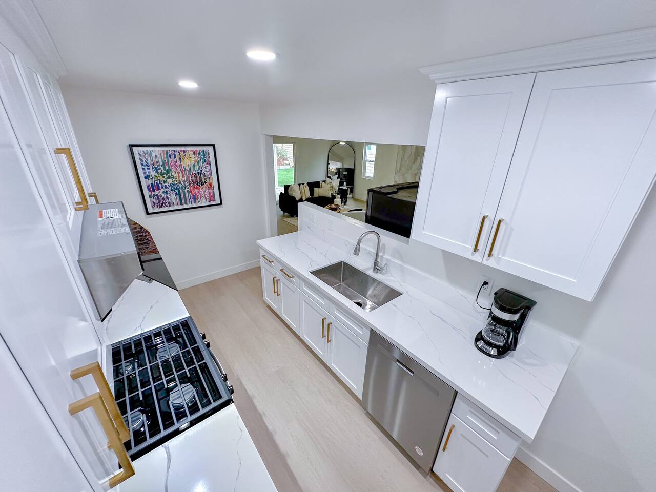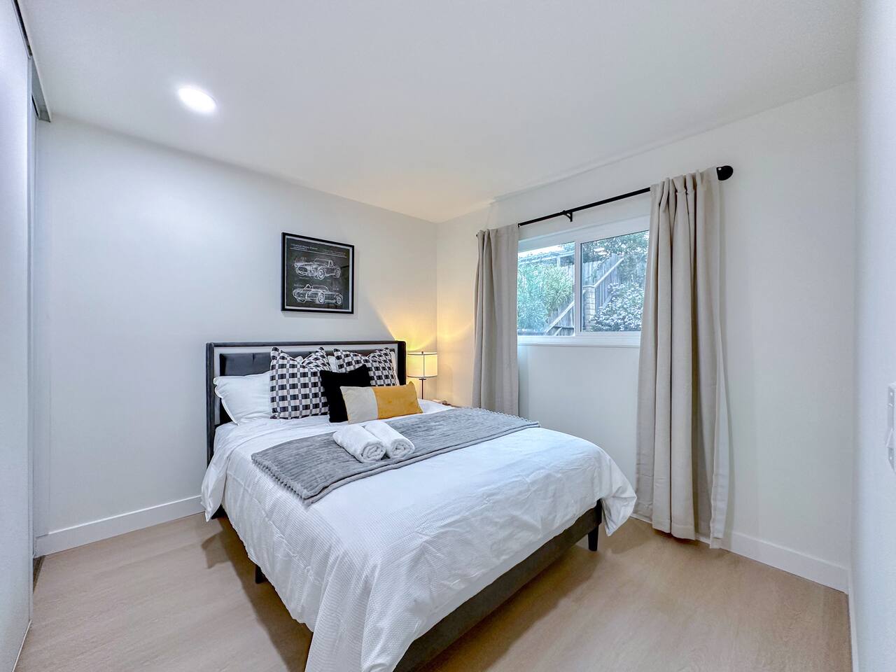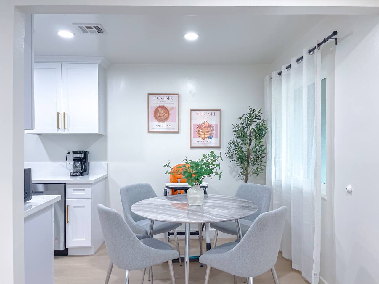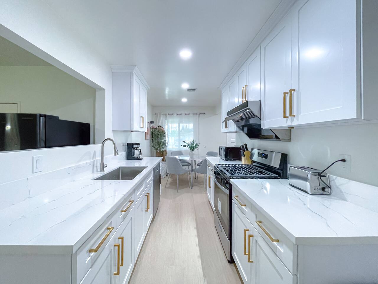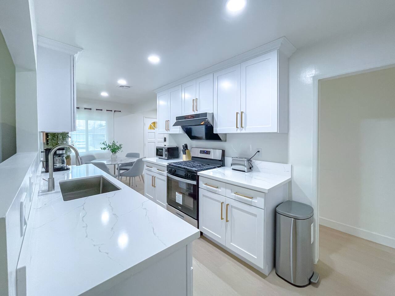 This entire private single-family home offers a comfortable, family-friendly layout with two living rooms, allowing everyone to relax without feeling crowded—ideal for families traveling together or multi-generational groups. 🏡 Home Overview Single-story home Private entrance Two separate living rooms for extra space & flexibility Central air conditioning Steps present on property 🛋️ Living Spaces Main Living Room: Large seating area 78” Smart TV Perfect for movie nights and group gatherings Second Living Room: Separate, quieter space Ideal for kids, reading, remote work, or relaxing away from the main TV (No cable provided—guests may log into their own streaming accounts.) 🛏️ Bedrooms & Sleeping Arrangements Primary Bedroom: King bed + ensuite bathroom Bedroom 2: King bed Bedroom 3: King bed Bedroom 4: Queen bed Fresh linens, pillows, towels, and extra blankets are provided. Additional towels are available in an unlocked closet. 🍳 Kitchen & Dining Fully equipped kitchen Pots, pans & cooking basics (oil, salt & pepper) Dishes, silverware, cups & wine glasses Coffee maker with coffee provided Dishwasher & garbage disposal 🧺 Laundry & Essentials Washer & dryer Vacuum Hair dryer Shampoo, conditioner & body wash Iron, ironing board & hangers 👶 Family-Friendly Amenities Crib High chair 🚗 Parking Garage parking Driveway parking Street parking available