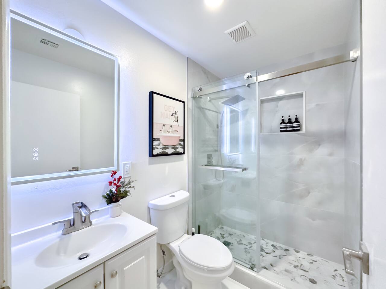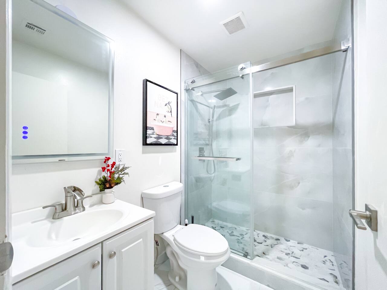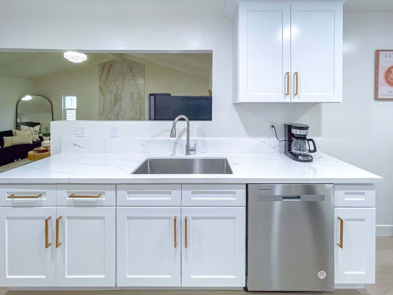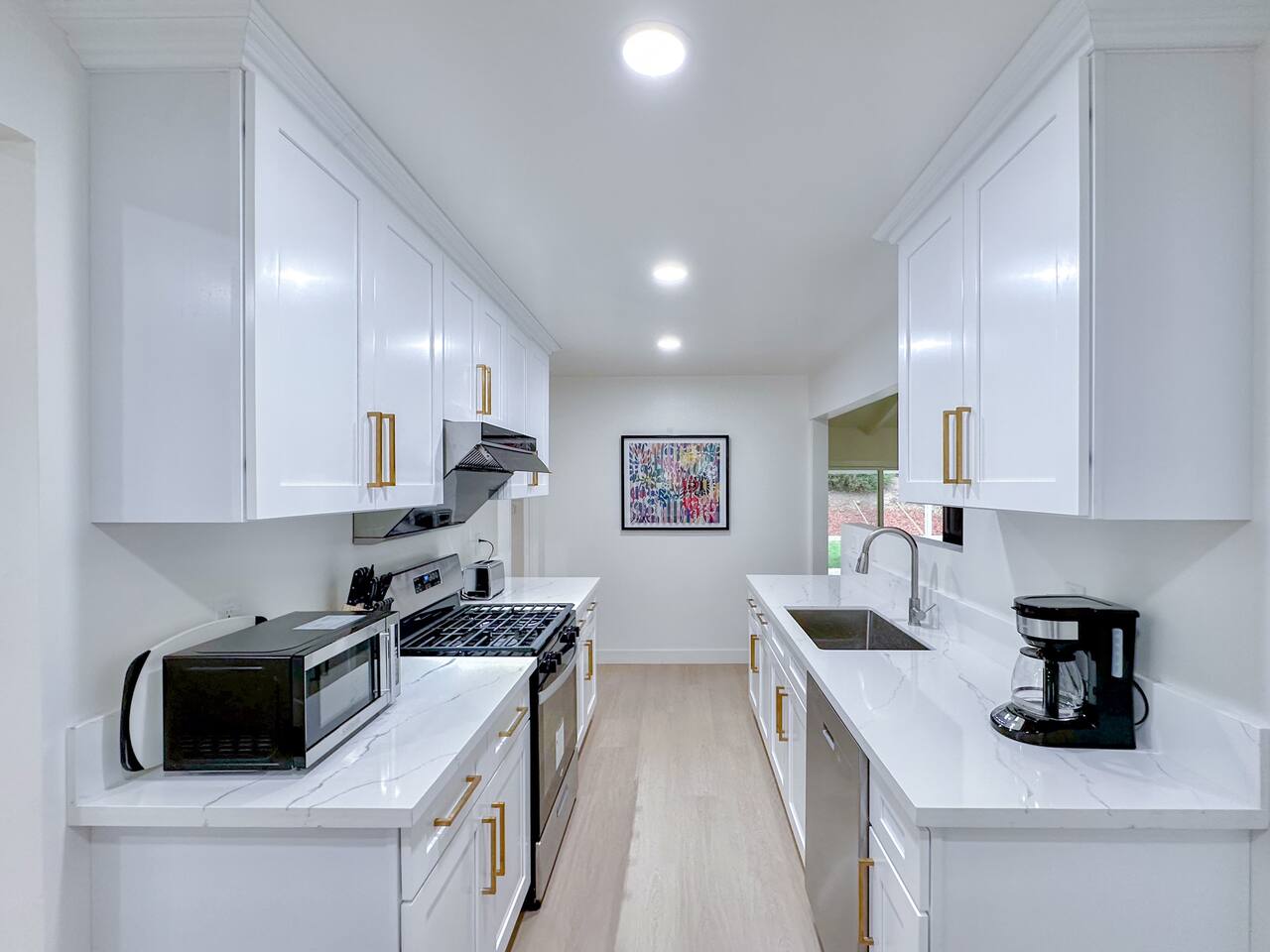 This entire private single-family home offers a comfortable, family-friendly layout with two living rooms, allowing everyone to relax without feeling crowded—ideal for families traveling together or multi-generational groups. 🏡 Home Overview Single-story home Private entrance Two separate living rooms for extra space & flexibility Central air conditioning Steps present on property 🛋️ Living Spaces Main Living Room: Large seating area 78” Smart TV Perfect for movie nights and group gatherings Second Living Room: Separate, quieter space Ideal for kids, reading, remote work, or relaxing away from the main TV (No cable provided—guests may log into their own streaming accounts.) 🛏️ Bedrooms & Sleeping Arrangements Primary Bedroom: King bed + ensuite bathroom Bedroom 2: King bed Bedroom 3: King bed Bedroom 4: Queen bed Fresh linens, pillows, towels, and extra blankets are provided. Additional towels are available in an unlocked closet. 🍳 Kitchen & Dining Fully equipped kitchen Pots, pans & cooking basics (oil, salt & pepper) Dishes, silverware, cups & wine glasses Coffee maker with coffee provided Dishwasher & garbage disposal 🧺 Laundry & Essentials Washer & dryer Vacuum Hair dryer Shampoo, conditioner & body wash Iron, ironing board & hangers 👶 Family-Friendly Amenities Crib High chair 🚗 Parking Garage parking Driveway parking Street parking available